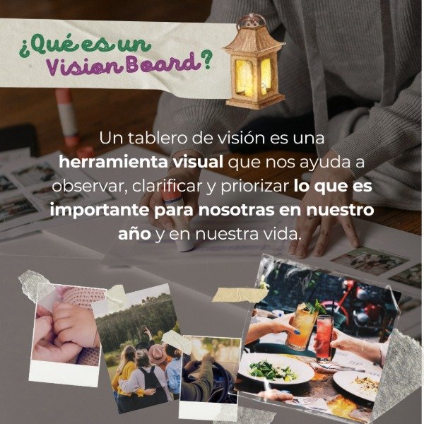 Un tablero de visión es una herramienta visual que nos ayuda a observar, clarificar y priorizar lo que es importante para nosotras en nuestro año y en nuestra vida.